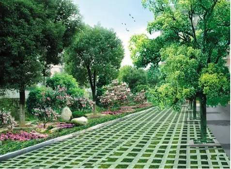 利于更換及修補(bǔ)的防滑鋪裝材料,以及它的透水性,加上鋪設(shè)尺寸符合人體工程學(xué),真是人性、環(huán)保、安全而美觀。而停車場(chǎng)周圍的綠植,起到降溫作用,視覺(jué)上也美化了場(chǎng)景,愉悅內(nèi)心,安全出行,再好不過(guò)。