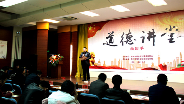 為了進一步培育和踐行社會主義核心價值觀,夯實公民思想道德教育活動平臺,大力宣傳學(xué)習(xí)道德模范和身邊好人的感人事跡,不斷提高文明單位創(chuàng)建水平, 2017年12月8日下午在市規(guī)劃建設(shè)委附屬二樓會議中心,由市城鄉(xiāng)規(guī)劃建設(shè)委員會主辦、市城鄉(xiāng)規(guī)劃設(shè)計院承辦的市規(guī)建系統(tǒng)2017年度“道德講堂——愛國季”活動。市規(guī)建委機關(guān)、在建設(shè)大廈委屬二級機構(gòu)在崗?fù)尽⑵渌瘜賳挝淮砉?20多人參加,市規(guī)建委主任、委黨組書記朱林及部分在崗委領(lǐng)導(dǎo)共同參加本次講堂活動。