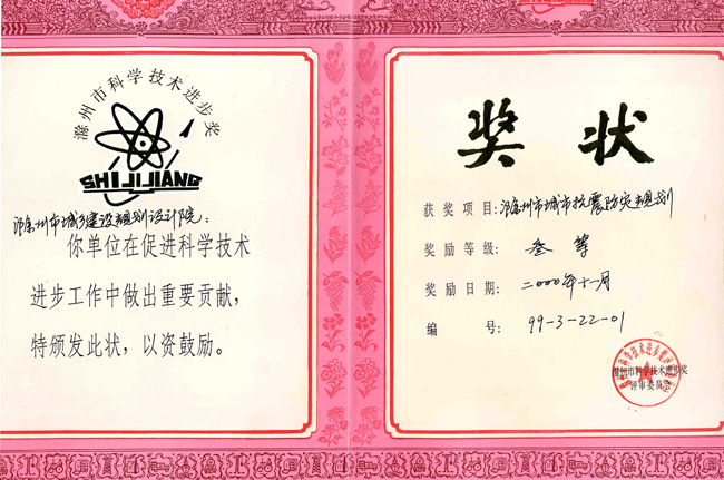 滁州市抗震防災(zāi)規(guī)劃(科技進(jìn)步三等獎).