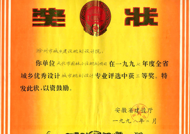 滁州市經(jīng)開區(qū)地形圖測繪規(guī)劃獲獎證書